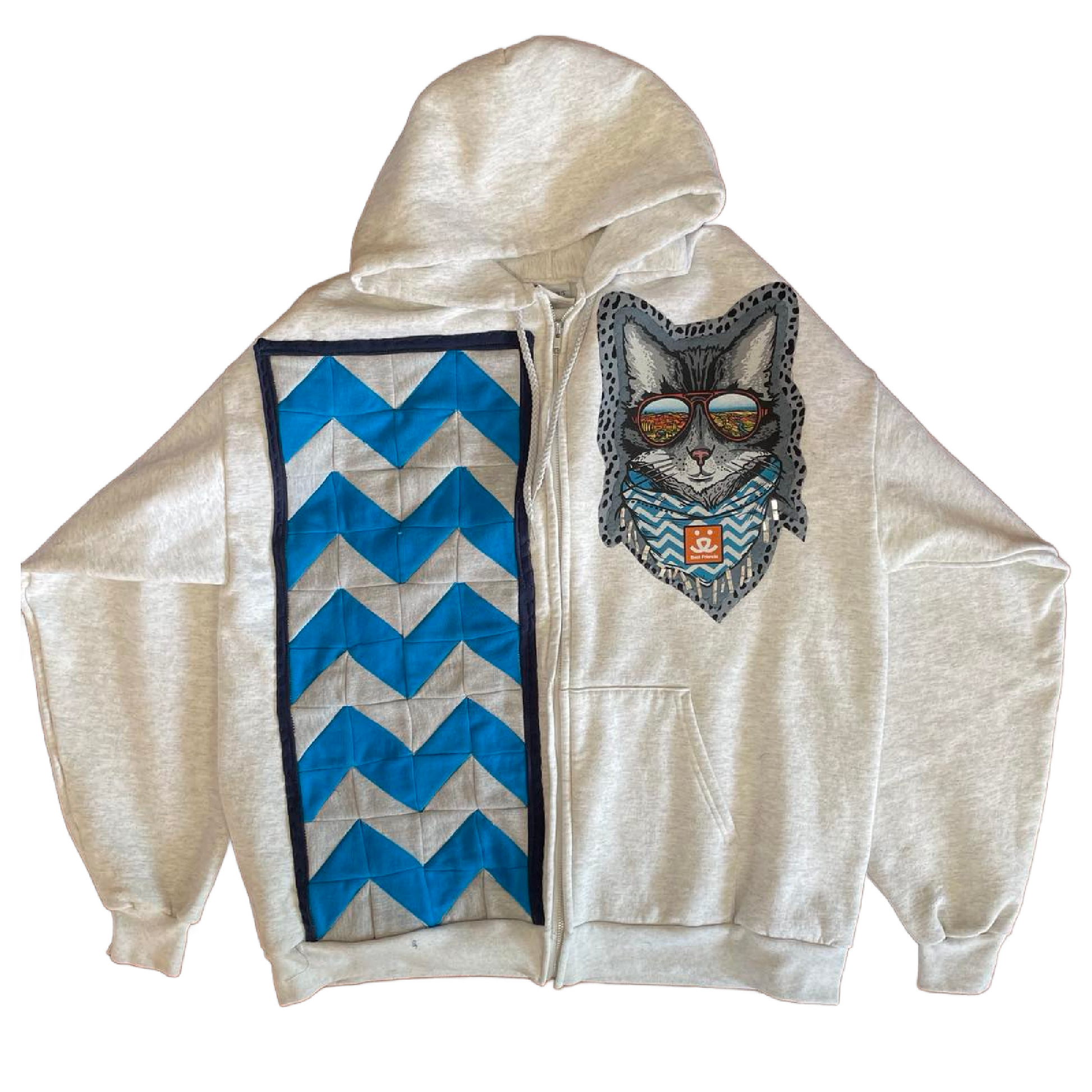 Cat lover? Get the cool kitty with shades hoodie accented with quilted chevrons. Did we mention it's one of a kind? Oh, yeah. Get the hoodie.